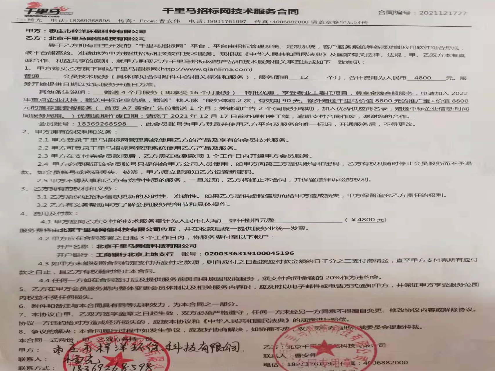 千里馬招標(biāo)服務(wù)合同